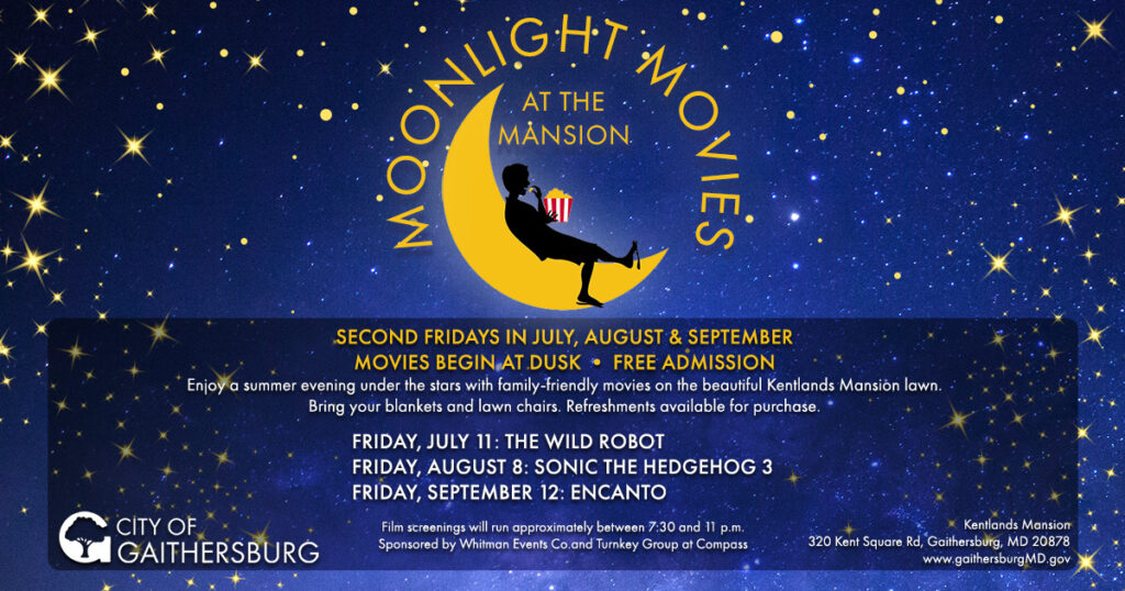 On select Fridays through September 12th, Kentlands Mansion invites you to experience a summer evening lit by moonlight! Bring your blankets, your little ones, and a love for film, and enjoy Moonlight Movies at the Mansion on the second Friday of the month. This weekend, the film being presented is Sonic the Hedgehog 3. Screenings will run approximately between 7:30 PM and 11:00 PM, so arrive early, get cozy, and enjoy this beloved community event. The final summer movie is scheduled for September 12th, so mark your calendar now to catch Encanto on the big screen!